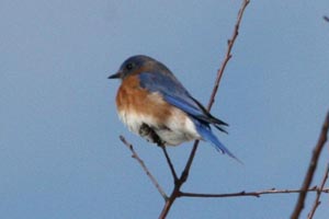 | xx Canada Geese x Red-tailed Hawk x American Kestrel, great view of his hovering abilities! x Mourning Dove x Red-bellied Woodpecker x Downy Woodpecker x Blue Jay x American Crow x Black-capped Chickadee x White-breasted Nuthatch x Eastern Bluebird, beautiful male in sunshine xx American Robins x American Tree Sparrow x Song Sparrow x American Goldfinch