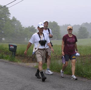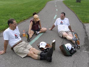 ![]() IBA walkers Tom Romito, Katie Genoviso, and Stan Searles take a break along the 31-mile IBA route. |
