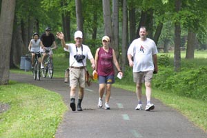 ![]() IBA walkers (left to right) Tom Romito, Katie Genoviso, and Stan Searles march up the all-purpose trail through the Rocky River IBA. |