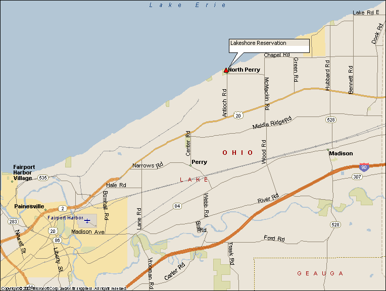 Lakeshore Reservation's address is 4799 Lockwood Rd, Perry, OH 44081. Take Route 2 East. Route 2 turns into Route 20. Stay on Route 20 until you get to Antioch Rd. Turn left on Antioch Rd. At the end of Antioch Rd, turn right on Lockwood Rd. Lakeshore Reservation is on the left.