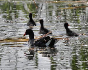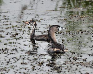 Families of Pied-billed Grebes and Common Moorhens and a singing Dickcissel were the highlights of the WCAS auto tour at Ottawa National Wildlife Refuge. In fact Common Moorhens and Pied-billed Grebes appeared at several locations along the tour. A couple of Black-bellied Plovers offered nice scope views in the one section with shorebird habitat. Other shorebirds were too distant to enjoy. With the Plovers was a flock of 45 or more Great Egrets, with at least one Snowy Egret. Three species of tern and five species of swallow made this a great birding day. Did I mention that we saw 4 Bald Eagles at one location?